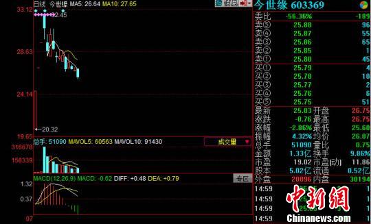 7月24日 中国新闻网 白酒股新贵今世缘被“抛弃” 12天市值蒸发超33亿
