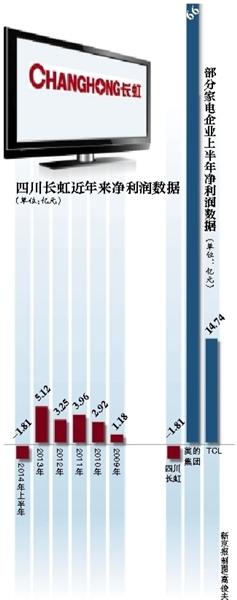 长虹最新公布的半年报显示,归属于上市公司股东的净利润同比减少179.73%,由盈利变为亏损1.81亿元,扣除非经常性损益则亏损4.2亿元。