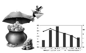 近15个月来的行业数据显示,2013年6月起,保险资金在股票和证券投资基金规模一直在7000亿至8000亿的区间波动。2014年2月,这一数值终于“破8”,在3月达到8459.64亿元的高点后扭头向下,未能突破2013年5月的“波峰”值8664.64亿元。从绝对值来看,险资在此方面的配置仍高于2013年4月的8007.02亿元。