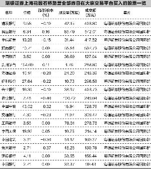 上述18股均为沪市的股票,而深市昨日也有平安银行、万科A、京东方A等3股的买方为瑞银证券上海花园石桥路证券营业部。不过,卖方为机构而非海通证券国际部。