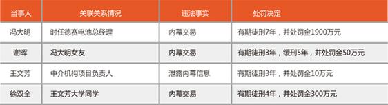 2012年5月,证监会对冯大明等人涉嫌利用内幕信息交易"德赛电池"股票行为立案稽查。2012年7月,证监会将该案移送公安机关。上海市第一中级人民法院、深圳市中级人民法院分别于2013年5月和8月作出如下刑事判决。