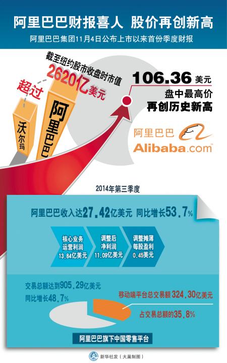 随着“双十一”临近,在美国纽交所上市的阿里巴巴(BABA)又成为了资金追逐的焦点。近日,阿里巴巴披露了其上市后的首份财报,由于其财报内容超出市场预期,再度为其股价添了把“火”,股价大涨超4%,创下上市以来的新高。业内分析人士指出,阿里巴巴股价的企稳,有利于带动其他中概股股价。
