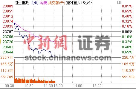 沪股通半日仅用两成额度 沪港两地股指持续走低