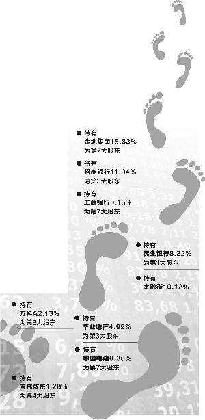 据记者不完全统计,安邦保险目前在A股市场上持有9只股票,分别为金地集团、招商银行、金融街、民生银行、华业地产、吉林敖东、中国电建、工商银行和万科A。其中4只为地产股,3只为银行股。