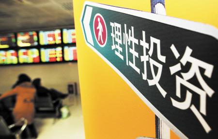 12月10日,沪深两市开盘剧烈震荡,沪指最低下探至2807点,截至收盘,沪指涨2.93%,深成指涨4.24%。图为股民在一证劵营业厅“理性投资”提示牌旁关注行情。 新华社 发