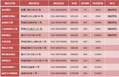 据记者最新了解,由于两会召开,以及不少企业来京更新财报,目前金融街附近的酒店几乎呈现饱和状态,2013年3月份的一幕即将重演。我们不妨将之前的那份攻略再温习一下,或许对不少券商人士的工作规划颇有意义。