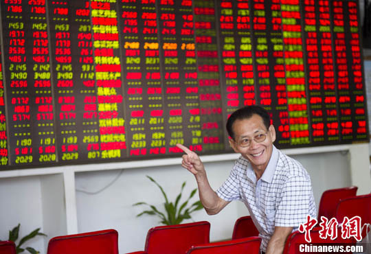 4月30日,海口某证券交易大厅的股民喜上眉梢。中新社发 骆云飞 摄