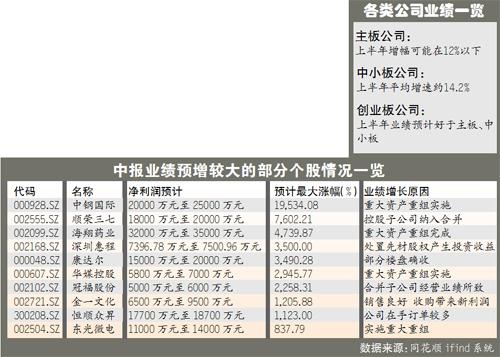 由于主板中,业绩占比较大的银行、保险、地产等较少公布预告,因此,目前已发布的预告并不具备代表性。而根据招商证券分析师张夏的统计对比,主板公司今年上半年整体业绩可能表现最差,增幅可能在12%以下。