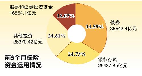 按照资金量统计,截至去年5月底,保险资金在股票和证券投资基金上的投入为8141.13亿元;而今年5月底,这一数字已达16554.1亿元。一年间,险资新增入市资金超8000亿元,比上年翻了一番。