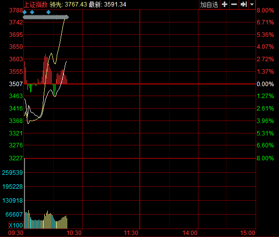 三大指数强势翻红 沪指涨逾2%冲刺3600点