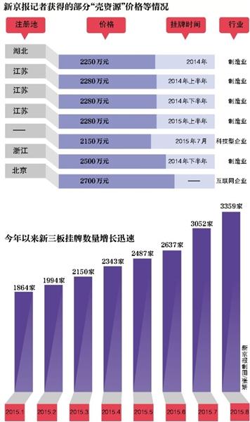 新京报记者调查获悉,由于新三板市场被越来越多的企业青睐,申报企业持续增多,新三板上的“壳资源”开始走俏。据悉,目前新三板的壳费叫价已超过2000万元。