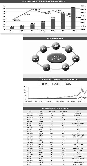 即使从2012年底开始的创业板指数,也跑弱于大数据概念指数,足见大数据概念相关个股具有较好的回报。相对高点时,大数据概念指数强于创业板指数10倍以上;从低点起来,大数据指数的涨幅到最高点超过18倍,如此高的涨幅让许多人羡慕不已,相关个股精彩纷呈(详见图3)。