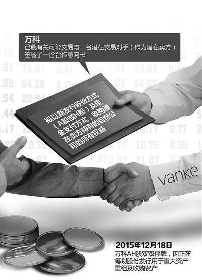 此前的1月29日,万科在公告中表示,由于此次筹划的重大资产重组涉及的资产、业务、财务等各方面核查工作量较大,无法确定3月18日前是否可以披露重大资产重组预案或报告书。其公告称,如果不能,则公司将召开临时股东大会审议公司A股股票继续停牌至6月18日的议案。为谨慎起见,并确保申请继续停牌的股东大会在2016年3月18日前召开完毕,董事会决议:如公司未能在2016年3月18日前披露重大资产重组预案或报告书或者复牌,在公司2016年第一次临时股东大会审议通过相关议案的前提下,同意公司向深圳证券交易所申请公司A股股票因筹划重大资产重组事项,继续停牌至2016年6月18日。