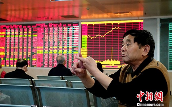4月5日,成都某证券交易大厅内,股民们正交流自己股票收益情况。截至收盘,沪指报3053.07点,涨43.54点,涨幅1.45%,深成指报10640.27点,涨260.62点,涨2.51%。 中新社记者 刘忠俊 摄