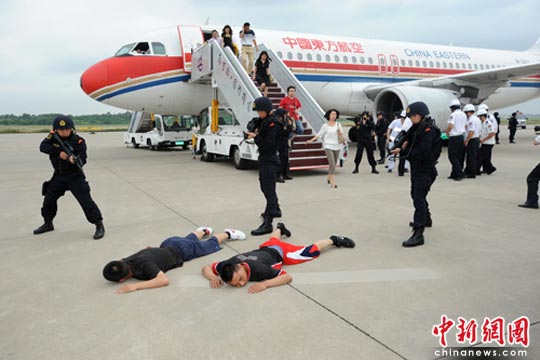 中新网南京6月30日电 (郑沁宇 朱晓颖)29日上午,一场反劫机应急救援演练在南京禄口国际机场上演。东航江苏公司派出一架空客A320飞机、50余名机组成员及群众演员参与此次演练。