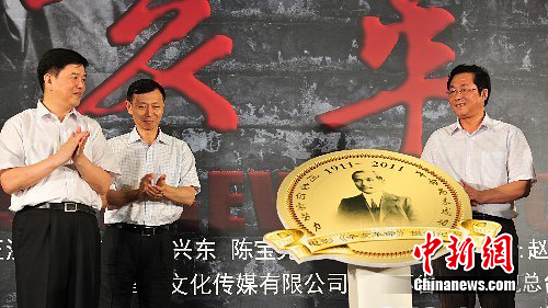 图为《辛亥革命》电影纪念佩章揭幕。中新社发 李学仕 摄