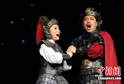 7月1日晚,总政歌舞团大型原创民族歌剧《木兰诗篇》在北京人民大会堂首演,作为木兰的传承者,青年歌唱家雷佳等主要演员倾情演出,给观众带来了一场视觉与听觉的饕餮盛宴,献礼党的生日。中新社发 刘震 摄