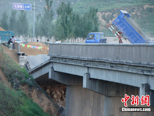 图为山西忻黑线公路九龙湾大桥(1号)垮塌现场。高增平 摄