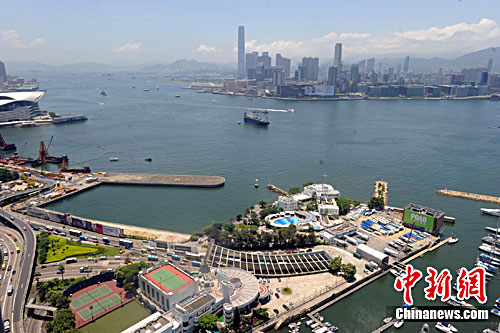 7月5日,香港睛空万里,蓝天下的维多利亚海港风光美不胜收。当天下午,香港天文台录得最高气温33度,是今年以来的最高纪录。中新社发 郑祚声 摄