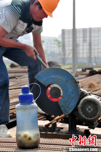 连日来,福建出现持续高温天气,各工地避开高温安排施工时间,而各位工人也在工作中想出一些妙招降温。林剑冰 摄