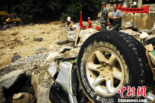7月14日,云南巧家特大山洪灾害现场的1000余名干部群众和沿江岸干部群众沿江下游全力开展失踪人员搜救工作,并商请四川凉山、宜宾组织人力帮助搜救。目前、已搜寻打捞出遇难尸体10具。图为搜救打捞人员顺洪峰过的地方搜寻。中新社发 田洪 摄