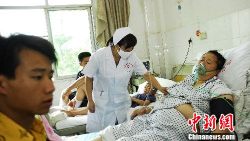 图为7月15日在巧家人民医院接受治疗的重伤员。中新社发 田洪 摄