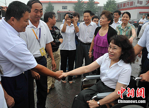 图为中国残联主席张海迪亲切慰问并感谢丰顺驾校的教练对残疾人学习驾车的支持和帮助。中新社发 潘旭临 摄