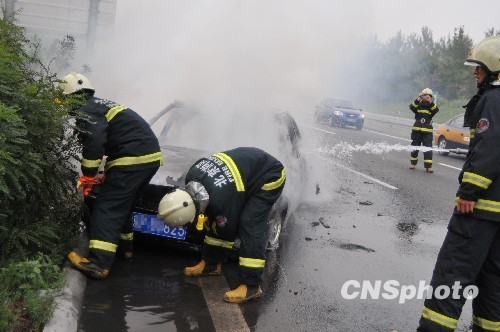 图:高温天气下北京一轿车自燃(2)