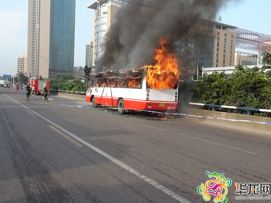 图为起火的公交车。