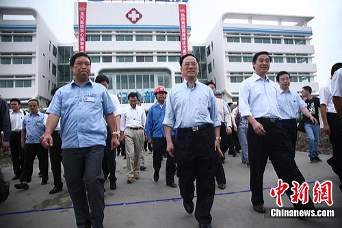中新网德阳7月26日电(刘贤 张浪)26日上午,香港特区行政长官曾荫权率特区政府代表团抵达四川地震灾区德阳,曾荫权一行考察了5个由香港特区援建四川地震灾区项目,并慰问了香港在川工作人员和当地百姓。