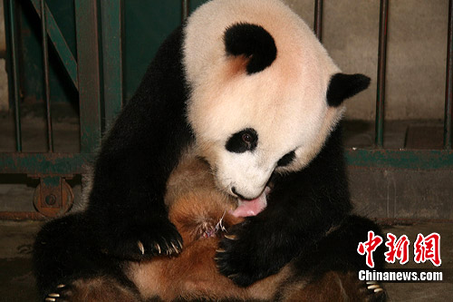 图:成都大熊猫“二丫头”产仔
