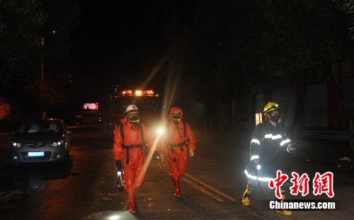 图为消防官兵正在前往氯气泄漏点。中新社发 唐俊勇 摄