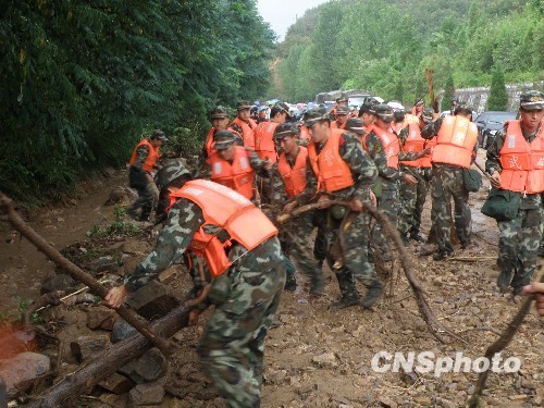 武警官兵全力抢险。中新社发 巩卫东 摄