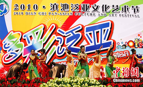 7月27日,享誉世界的印度宝莱坞歌舞团经典作品《宝莱坞的入场券》在昆明街头上演,风情万种的肢体语言和欢快的音乐为昆明观众献上了一台精致奢华的印度舞蹈饕餮盛宴。据悉,此次演出也是作为2010滇池泛亚文化艺术节的重头戏之一。中新社发 刘冉阳 摄