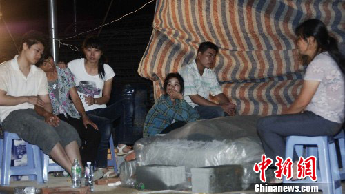 图为7月31日晚,死者家属正等待相关部门的处理结果。中新社发 王东明 摄