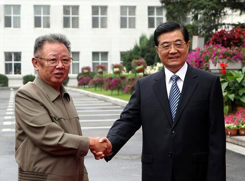 8月27日,中共中央总书记、国家主席胡锦涛在吉林省长春市同朝鲜劳动党总书记、国防委员会委员长金正日举行会谈。 新华社记者 鞠鹏摄