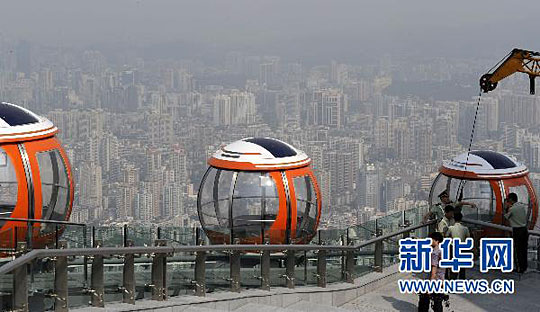 位于450米高的塔顶上观光球舱正在施工中(9月29日摄)。卢汉欣 摄