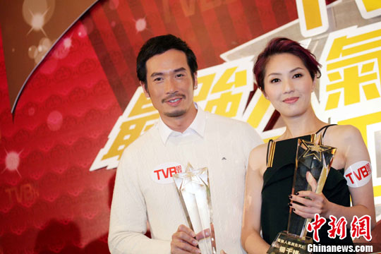 11月3日,香港影视红星陈豪、杨千嬅出席香港《TVB周刊》主办的“2010最强人气品牌大奖”颁奖礼,分别登上最强人气广告天王、天后宝座。