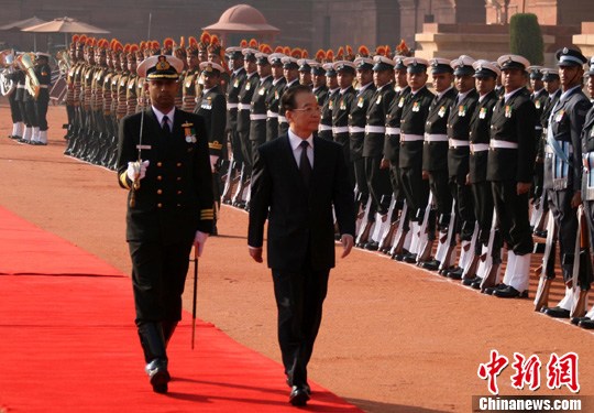 12月16日,中国总理温家宝与印度总理辛格举行会谈。会谈前,温家宝出席了辛格为他举行的隆重的欢迎仪式。中新社记者 周兆军 摄