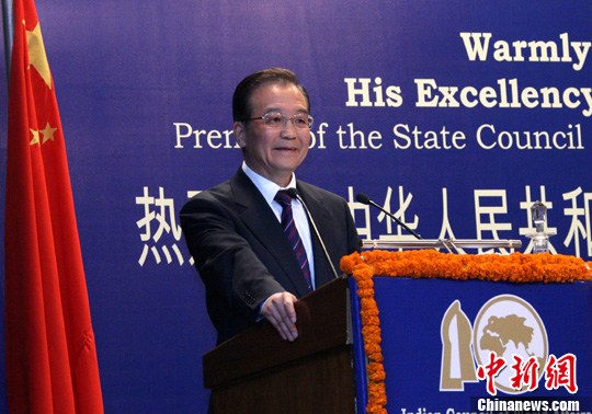 12月16日,中国总理温家宝在印度知名的外交和国际问题研究智库“世界事务委员会”发表演讲。中新社记者 周兆军 摄