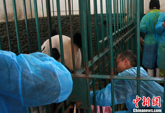尽管大熊猫不怕冷,但15日晚突如其来的大雪让成都气温骤降,为确保它们平平安安、健健康康,工作人员采用了用温热水为它们“擦澡”的方式。