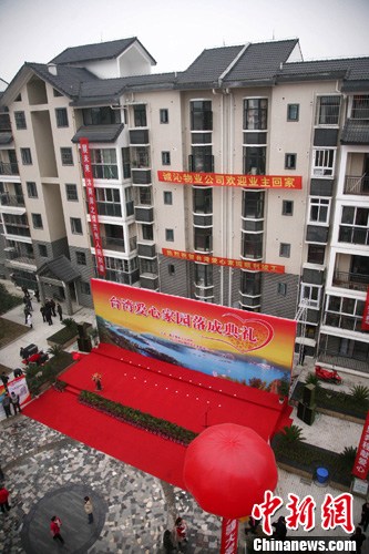 1月12日,由全国台企联合会发起,台湾海基会与台湾同胞捐赠的四川都江堰灾后重建工程“爱心家园”正式落成,“爱心家园”是台湾在四川地震灾区捐建的最大项目。该工程于2009年11月动工,总投资1.2亿元人民币,占地近80亩,共提供744套住房,建筑结构为砖混结构八度设防。中共中央台办、国台办常务副主任、海协会常务副会长郑立中,台湾海基会副董事长兼秘书长高孔廉出席了落成典礼。