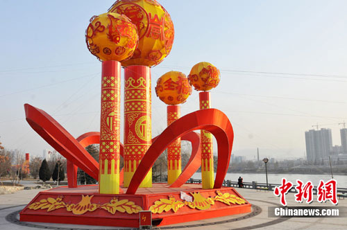 1月12日,兰州北滨河路上各类迎春彩灯把冬日兰州妆扮得多彩靓丽。杨艳敏 摄