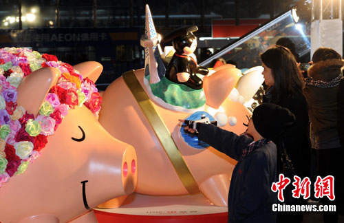 1月12日,由香港汇丰银行主办,旨在培养少年儿童理财意识的“小钱罌-大梦想”猪仔钱罌设计比赛名花有主,并于颁奖礼后在中环汇丰地面广场展出可人的30只大型猪仔钱罌模型。中新社记者 郑祚声 摄