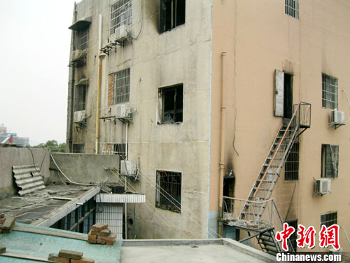 1月13日凌晨1时许,湖南长沙市河西枫林一路西娜湾宾馆发生火灾,事故造成现场死亡6人,另有8人紧急送往医院救治,其中4名重危者经医院全力抢救无效身亡,其余人员无生命危险。图为10余名房客通过与失火宾馆隔“缝”而建的居民楼顶层平台幸运逃生。