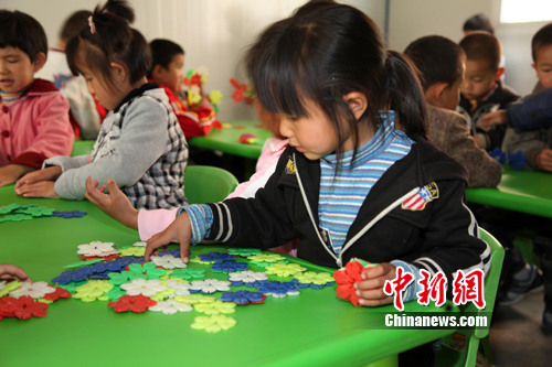 21日,云南盈江地震灾区所有中小学实现全面复课,19所达到安全标准的幼儿园也按照“家长自愿,学校确保安全”的原则接收儿童入园。 图为一名幼儿园小朋友在园内玩玩具。朱边勇 摄