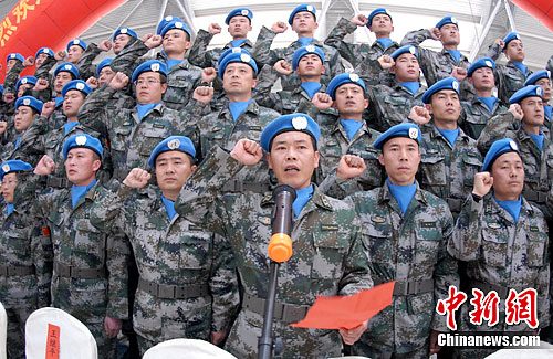 参与互动(0) 中国首批赴南苏丹维和部队第一梯队1月11日下午在河南省郑州市新郑国际机场举行出征仪式。中新社发 李书伟 摄
