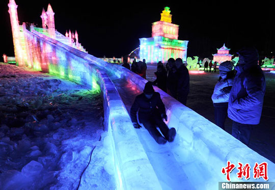 参与互动(0) 1月15日晚,新疆阿勒泰市夜晚的气温在零下20度左右,该市市郊拉斯特乡一座的冰雪民俗风情园内,却依然人来人往,热闹非凡。刘新 摄