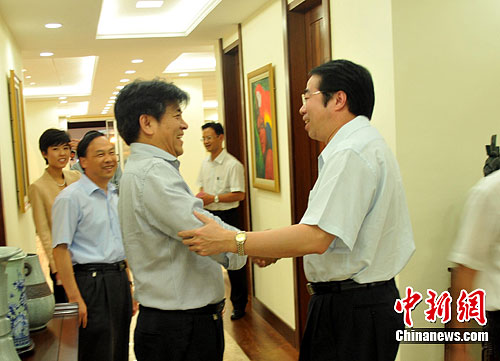 参与互动(0) 当地时间2月8日晚,刚刚履新18天的中国驻巴西大使李金章(左)在里约热内卢官邸亲切款待中国国务院侨办副主任许又声(右)率领的“文化中国·四海同春”赴南美洲艺术团全体成员,演员们与使馆人员共同表演了精彩的节目。中新社发 王明升 摄