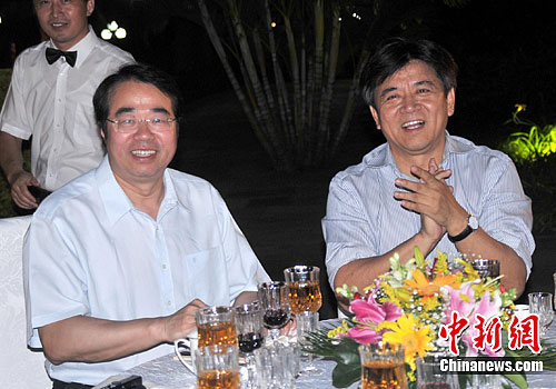 参与互动(0) 图为李金章大使(右)和许又声副主任(左)高兴地观看节目。中新社发 王明升 摄